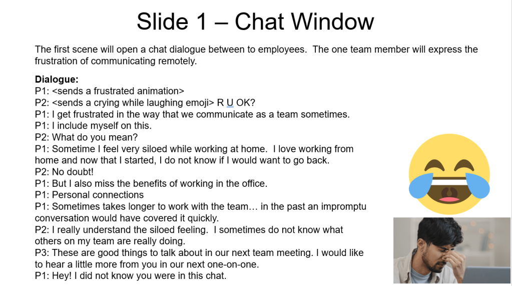 I create the aesthetic of the brand of the company and construct a color palette based upon it. If I am using characters, I will decide who the main characters are in this step. I will also select the proper font family that will be used based upon the company’s branding. Pending upon the project, I will simply use PowerPoint to establish this or Adobe XD if it is more complicated.