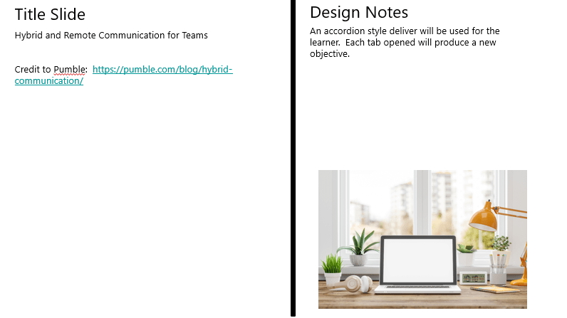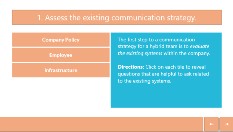 The next step is to create layout templates for each element of the learning experience such as the introduction slides, question slides, and content slides.